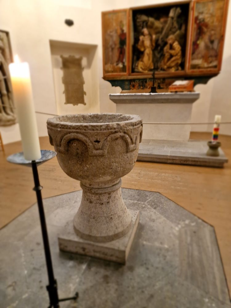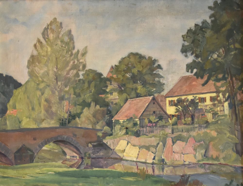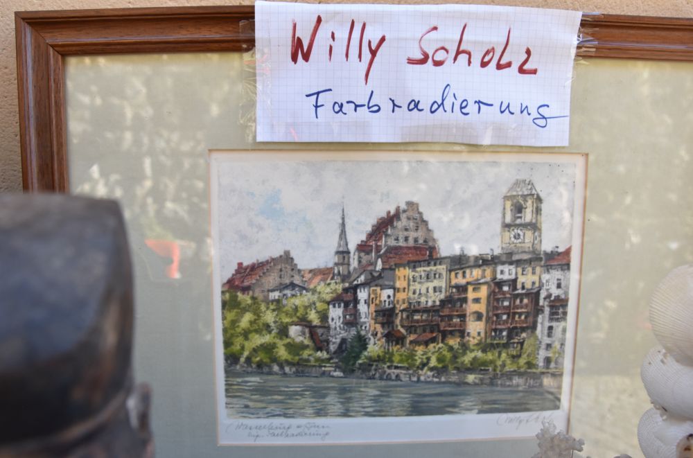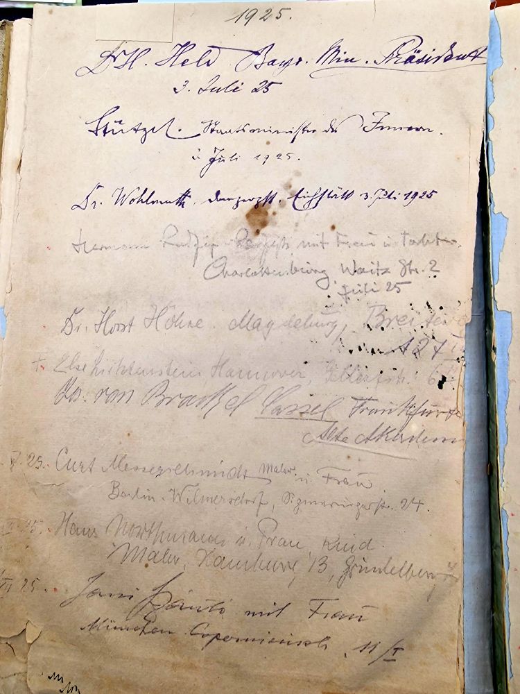 While Cathy lived in the Federal Republic of Germany, her grandmother lived in Perleberg in the former GDR; the painting of Venice was with Cathy’s grandmother, in Perleberg. When Cathy’s grandmother died in the 1960’s, Cathy travelled to Perleberg to settle the estate. An attorney told her that she had no right to the inheritance, because she had left the GDR as a student. “Okay, nothing to be done”, she said, ” but could I then just take the family baptismal bowl with me, as in our family, we have the tradition of engraving the name of each new-born child on it.” “Are you pregnant?”, the attorney asked. “Yes, I am expecting a daughter”, Cathy answered. “Well then”, the attorney answered, “you can renounce the inheritance in favour of your unborn daughter, as she did not leave the GDR on purpose.” And that is how the picture of my grandfather came to the Federal Republic of Germany and into Cathy’s house.