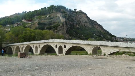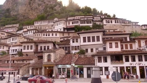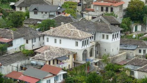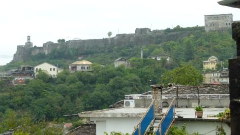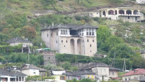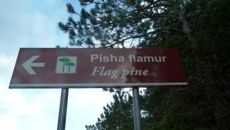 The Albanian flag is the black eagle with two heads on red. Here it is with the bust of Skanderbeg in Lezha (Albania).