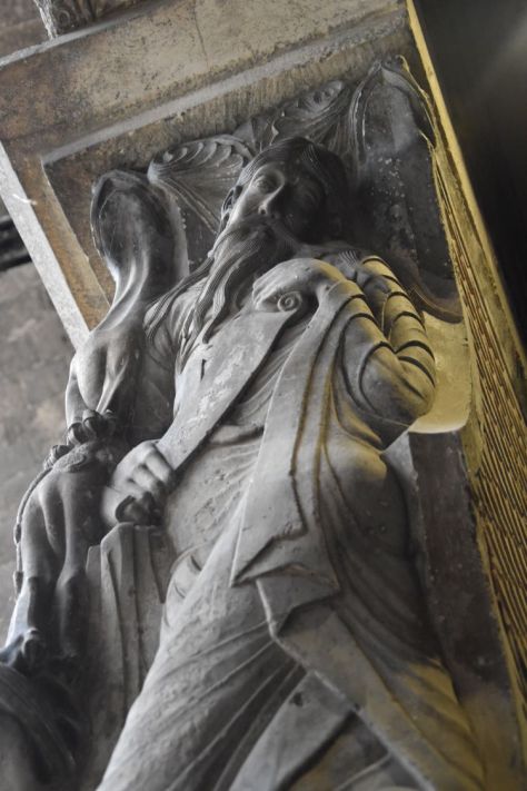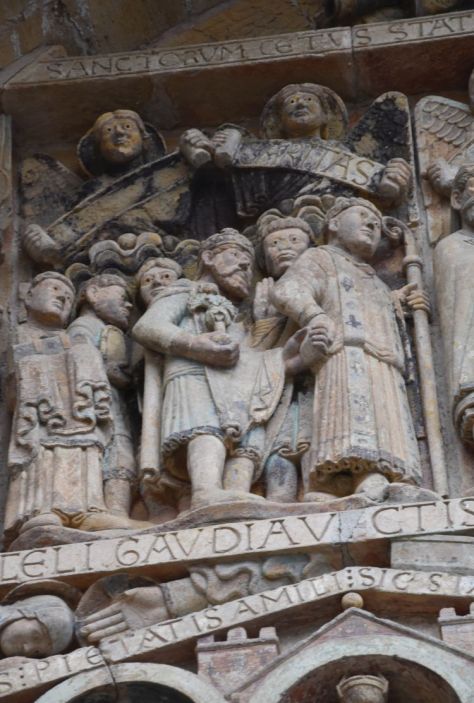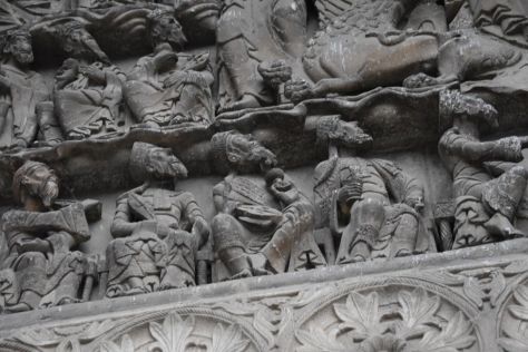 In the center of the porch (trumeau) there are statues of St. Peter, St.Paul and the Prophet Jeremy, the latter being Ursula’s favorite: Jeremy stands, his legs crossed and his head bent down to the side, with his eyes looking “inside”.