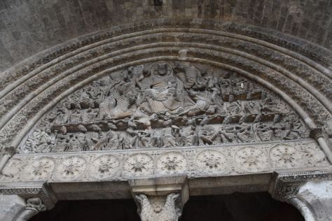 We escape to the side rooms, where we find a well curated museum with films that explain the works of art, in particular the beautiful porch. With what we learnt here, we look at the porch.