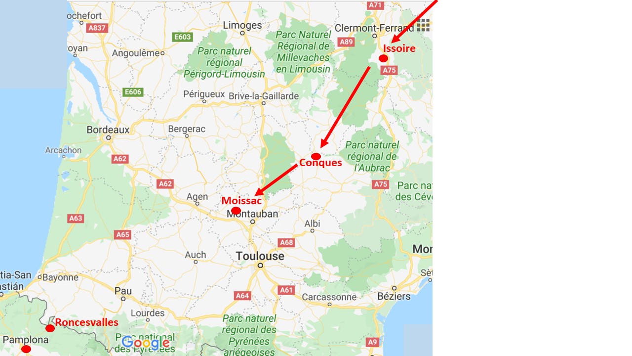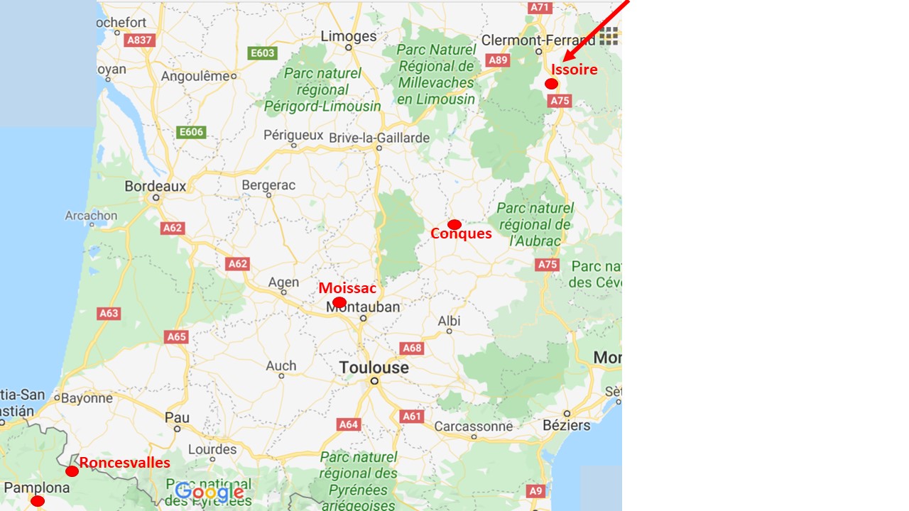 In November 2019 we drive from Moissac to Saint-Jean-Pied-de-Port, then up to the pass Ibañeta and to Roncesvalles, where Roland was ambushed in 778 and where pilgrims stay overnight on the Way of St. James (Via Podiensis).