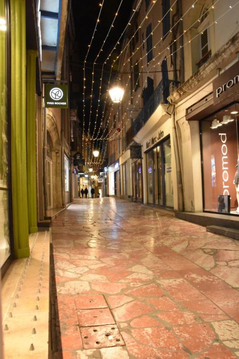 After having strolled through the city center with its narrow streets, we had a wonderful dinner (onglet steak) just across the arena, at Chez Hubert.