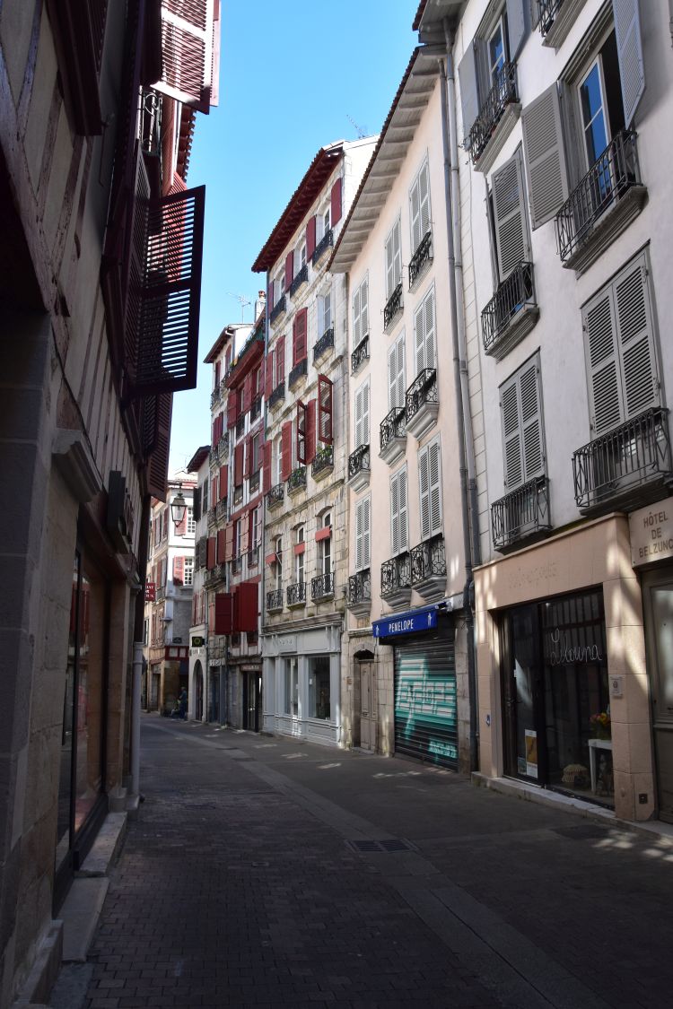 Using the Route Nationale, we drive along the coast line and find a free parking space right near the old castle in the center of Bayonne. We walk through the narrow streets of Grand Bayonne, with the typical half-timbered Basque houses that we already know from Hondarribia in Spain.