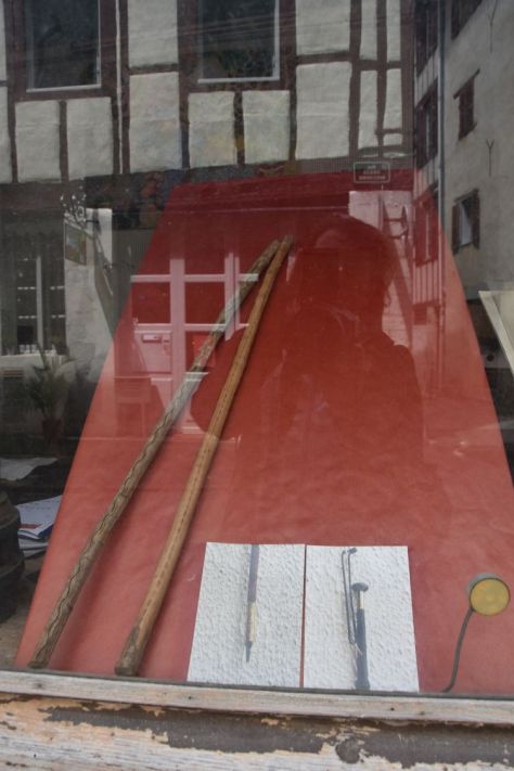 I have already learnt that the Bayonet was invented in Bayonne in 1703. This window tells me that the Makila, the armed stick (la canne armée), has also been invented in Bayonne.