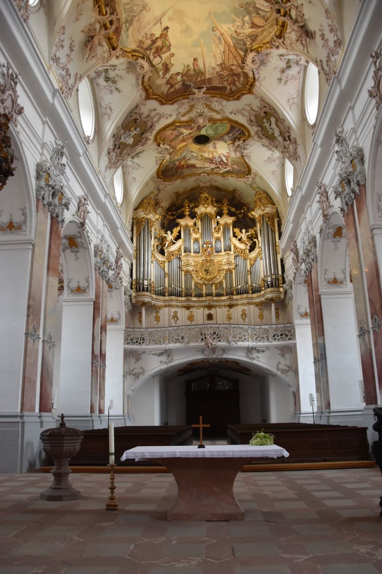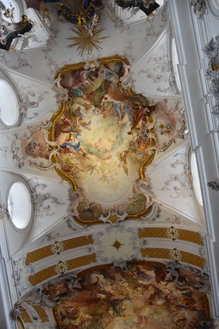 The main altar is baroque. One angel hangs above the pulpit and the second angel is above the baptismal font.