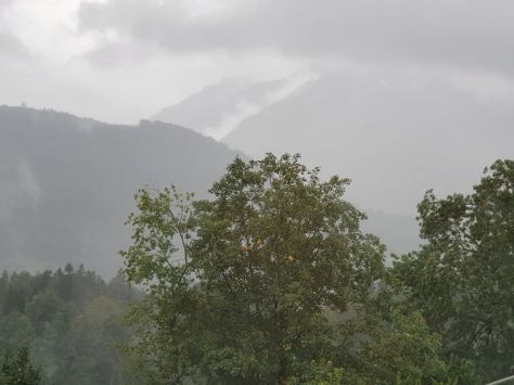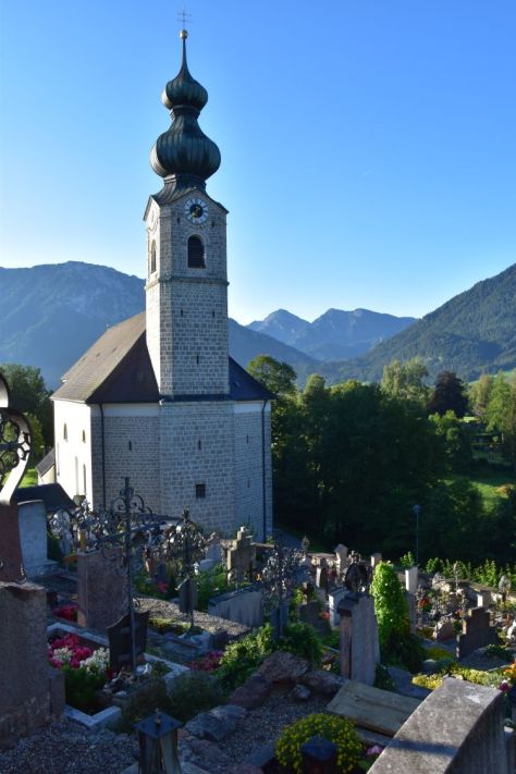 Not far from our hotel is the Church Saint George, nicely located on a hill above Ruhpolding. After the rainfalls, when the sun has returned on the last day of our vacation, I take this photo with the Sonntagshorn in the background.