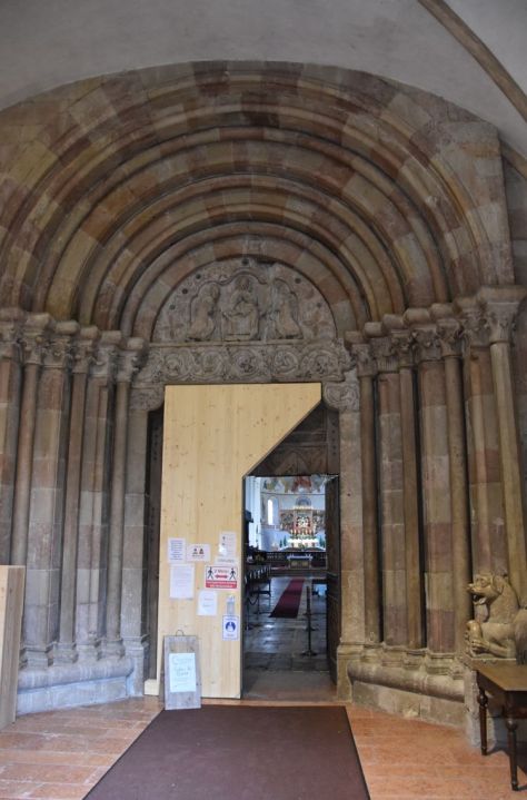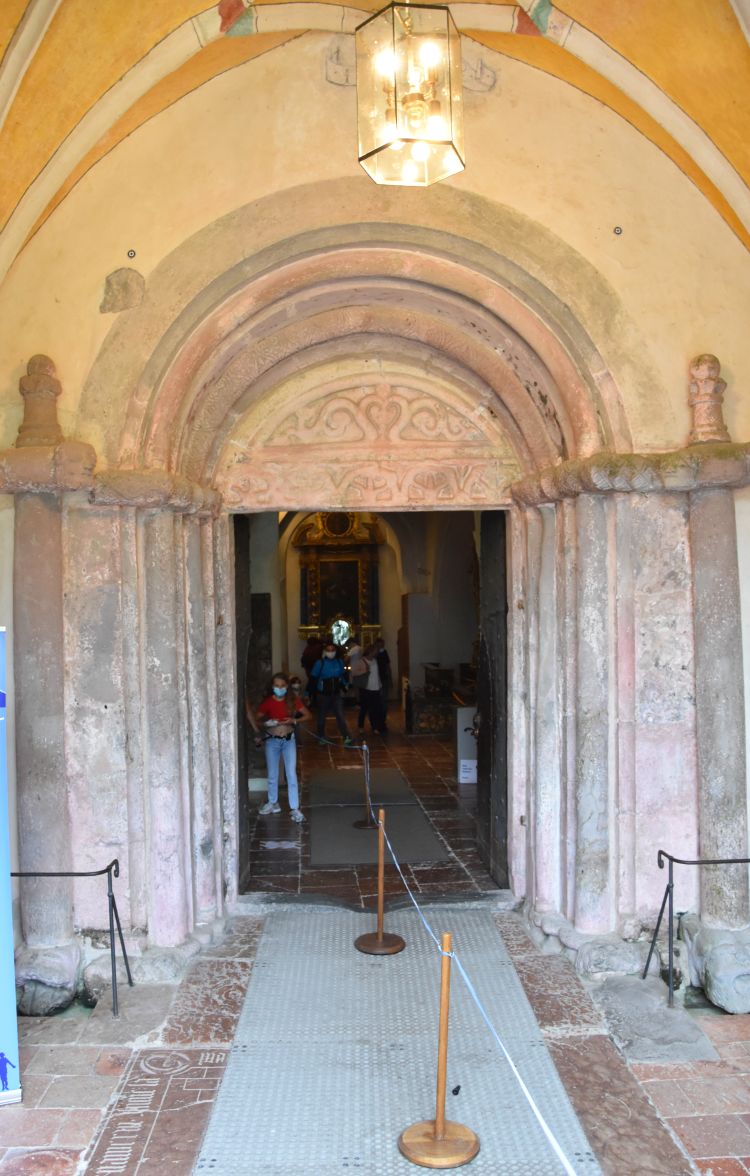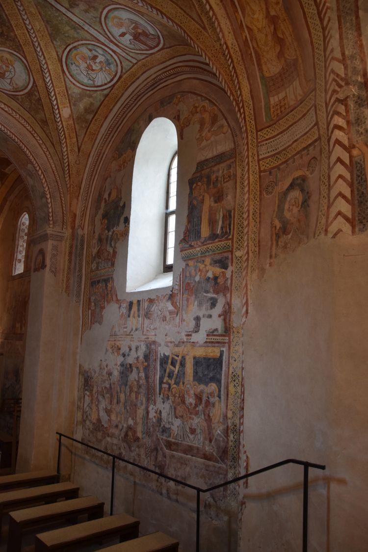 Saint Christopher greets us from the sidewall; Jesus child sits on his shoulder becoming heavier and heavier. Christopher is the patron of the travellers, ready to be invoked here by those who once transported goods across this pass.