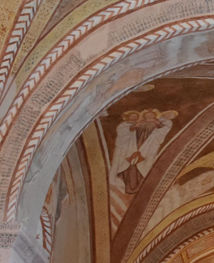 There are more frescoes in the choir, on the wall separating the choir from the nave. One of them illustrates the Last Judgment. We cannot see them.