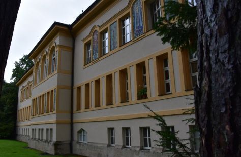 Below the chapel, there is a mountain inn that is closed today.