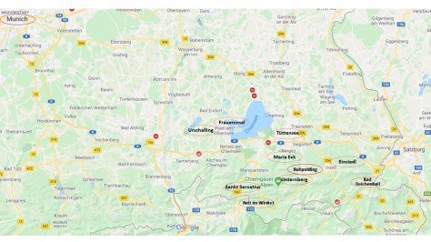 In August 2020, I spend four days in Upper Bavaria with my long-time friend from Munich. The weather is very rainy and we take the opportunity to learn about the cultural heritage of Bavaria that goes back to Romanesque and Gothic times: The church of Sankt Georg at Ruhpolding, the chapel of Sankt Servatius auf dem Streichen, Sankt Valentin at Zell (part of Ruhpolding), Sankt Nikolaus at Einsiedl.
