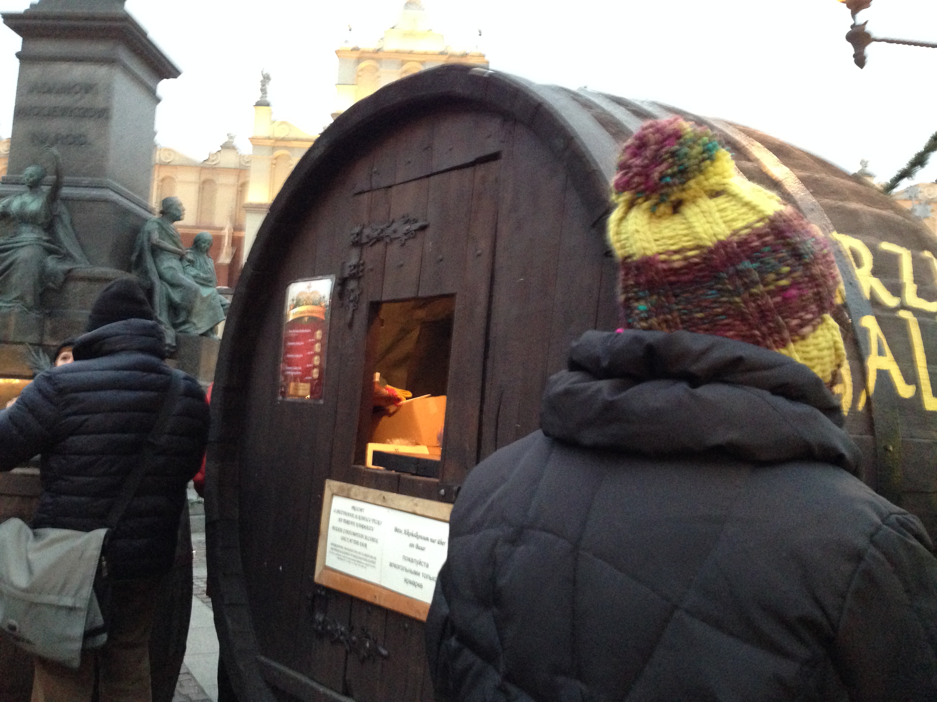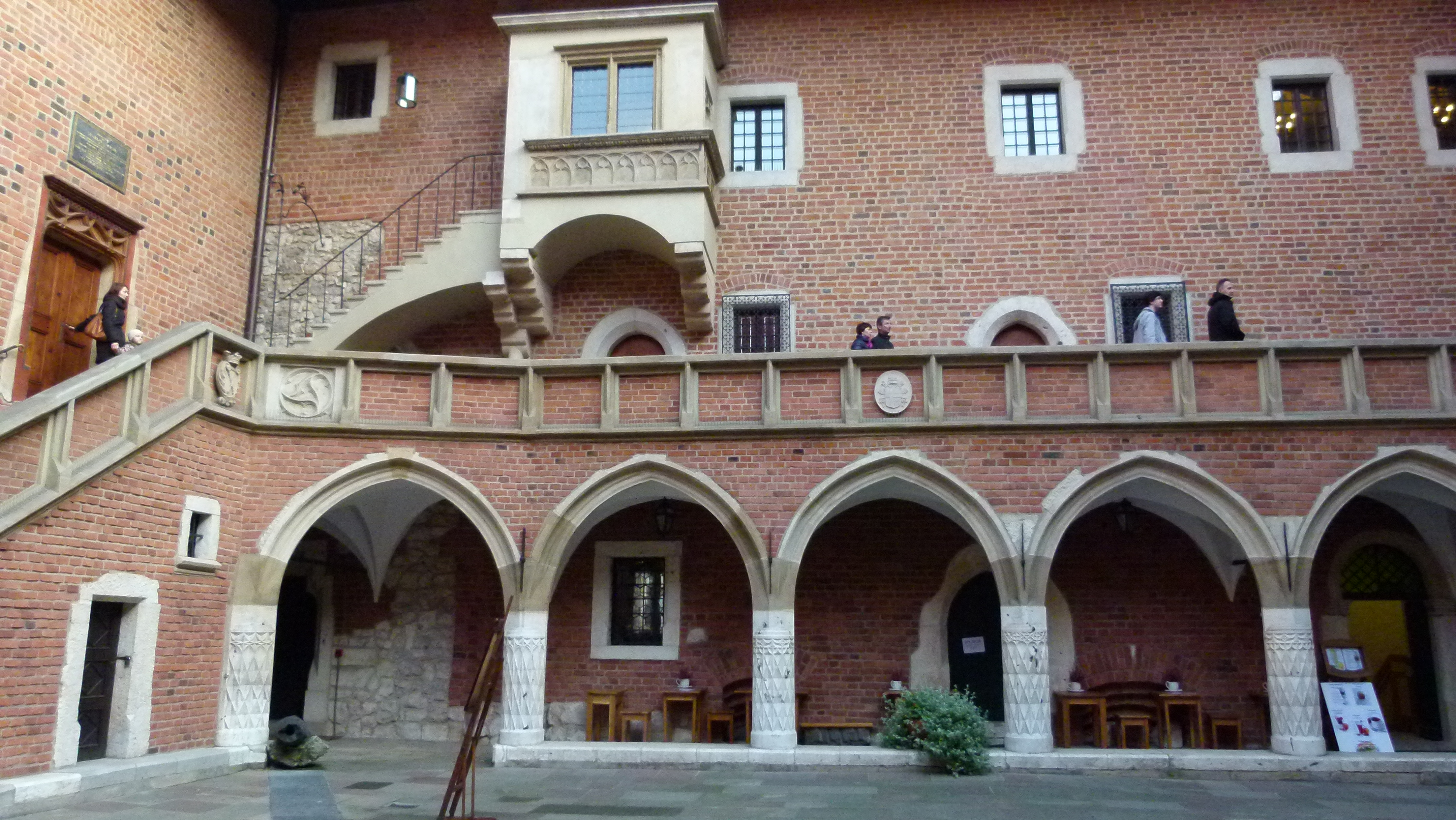 I stop by in the courtyard of the venerable Collegium Maius, the university from the 14th century. A group of tourists listen to their guide – shifting from one foot to the other. Yes, it is cold.