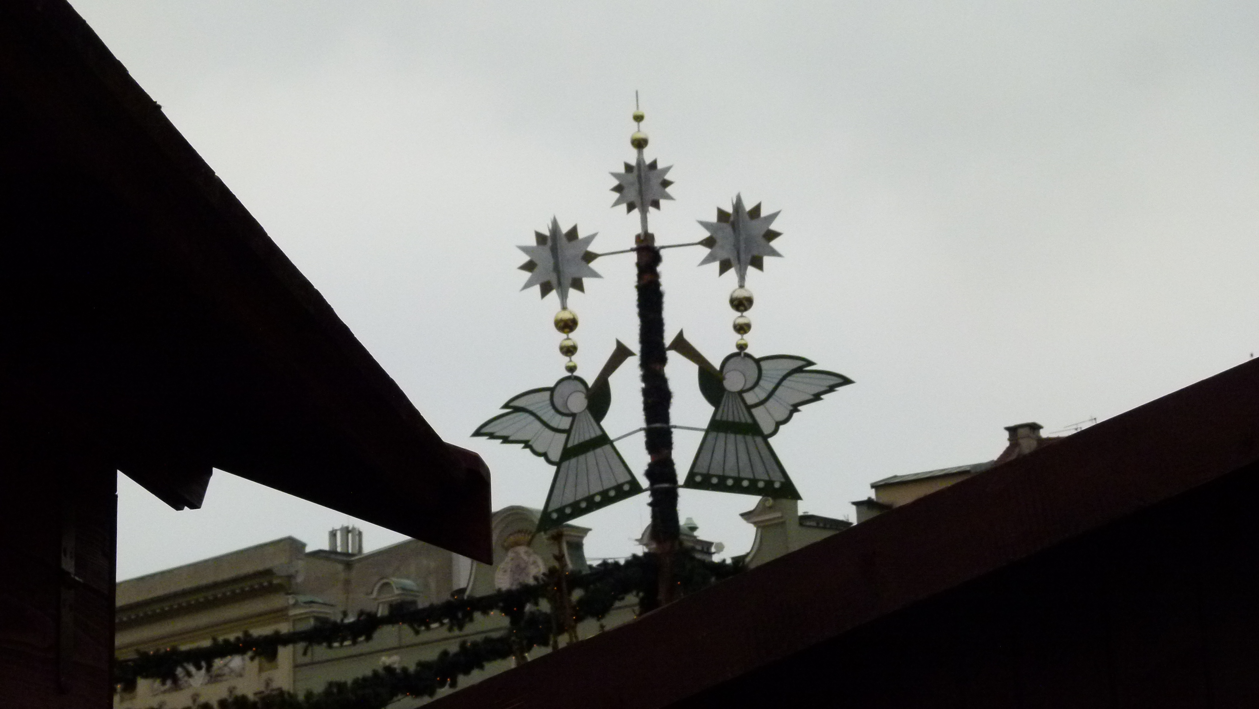 The museum shop is open. I enter it (it is warmer here) and find a pretty small book about legends from Kraków or “Krakauer Legenden”. On the cover is the Lajkonik (the Krakówians make fun of the Mongolians that could not conquer their city).
