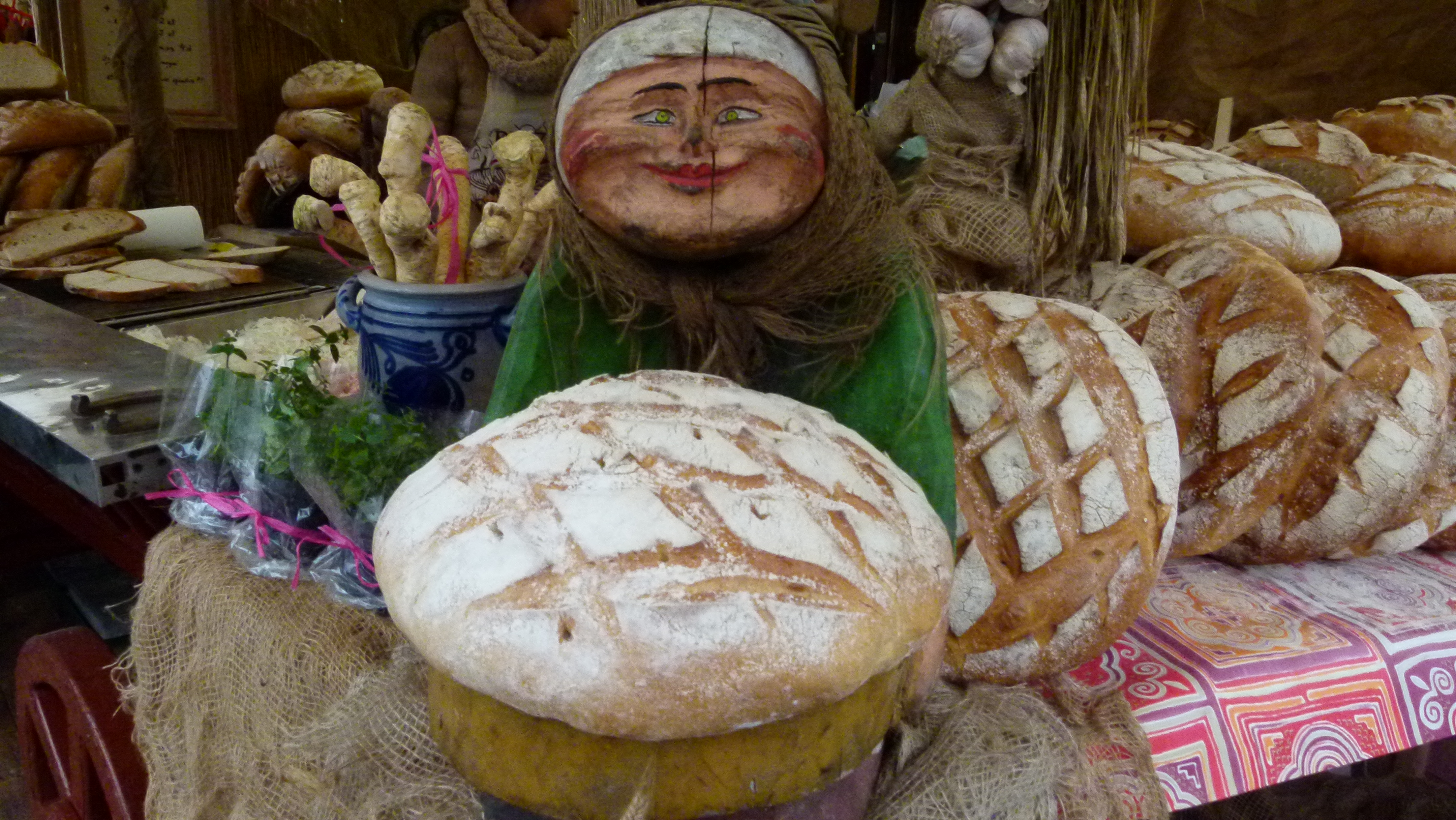 The shop opens at twelve. A young man comes and unlocks the gate. We enter with him and find an excellent selection of wine in the cellar: French wines from Burgundy, the Loire Valley, the Rhone Valley, Languedoc and the Alscace. Just having come back from Burgundy, I feel tempted to buy the Appelation Village de Savigny-Les-Beaune (not possible in the hand luggage, when flying back). He has nice Chablis 1er Crus from Côte de Léchet and Beauroy. In addition, gems from Germany are on sale, from Franconia (Silvaner in Boxbeutel bottle) and Rheinhessen (I see Gewürztraminer and Riesling). The young wine dealer is proud of his wine cellar and knows what he has. He explains that his Gewürztraminer from the Alsace differs from the Gewürztraminer in Rheinhessen. The first has residual sugar, the second is much drier. Yes, I have experienced that as well. His eyes shine happily, when I discover the Boxbeutel; he points to the right most Boxbeutel bottle which he prefers. He proposes a Viognier from Languedoc for our Fondue and I buy his last bottle of Crémant d’Alsace for Piotrek’s new apartment.