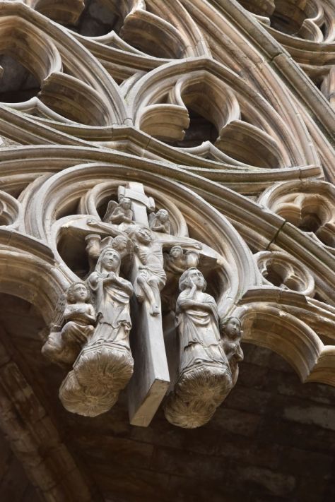 Spiral stairs with magnificent sculptures explaining the life of Jesus are leading up to the Choir.