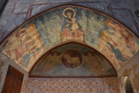 Now I look forward to seeing the famous apostle portal of the Gothic church Santa Maria La Mayor (built around 1300). Here it is, hidden because of renovation. Bad luck.