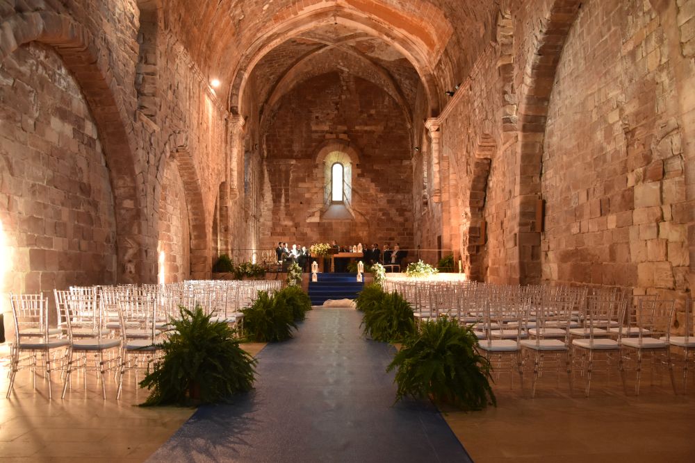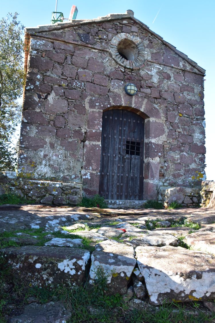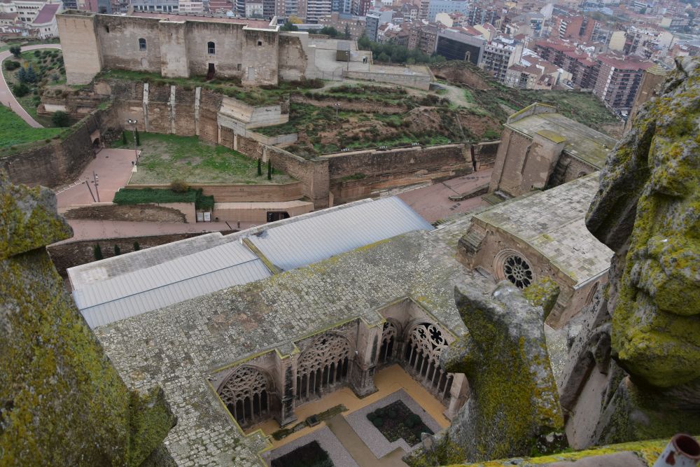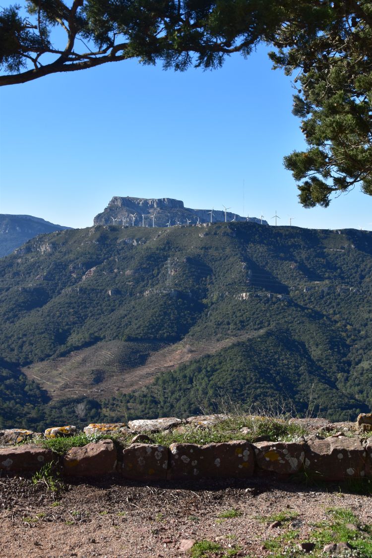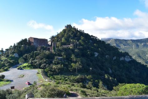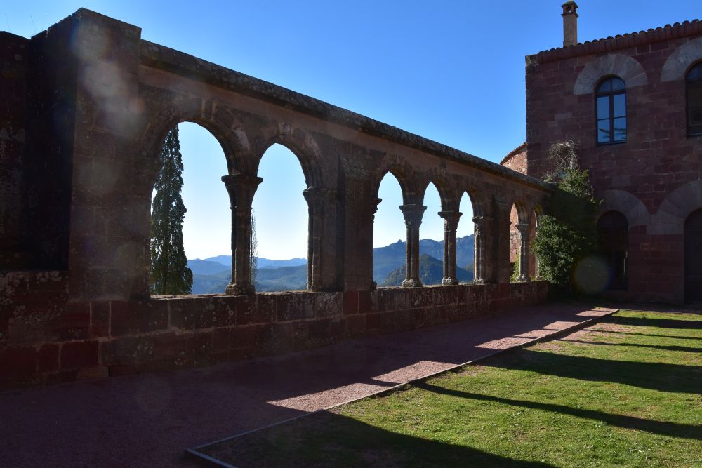 High above the Convento San Francesc is the castle. The access is in the cloister. This is the castle seen through one of the arches of the cloister.