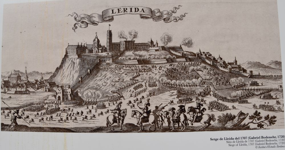 Now I understand, what Prince Lichnowsky experienced here, as described by Perucho. Lichnowsky was a nobleman from the Prussian Army that fought for the Carlists and Ramón Cabrera in the First Carlist War. Lichnowsky did not know that Espartero had taken over Morella in the meantime. He wanted to warn Cabrera of spies believing that Cabrera still resided in Morella. Lichnowsky approached the gate near the aqueduct. He noticed that he was received in a hostile manner. He retreated to one of the arches of the aqueduct. From here, he looked up and noticed the enemy’s flag wave on the castle. He understood, Espartero has conquered Morella and he, Lichnowsky, has to escape. He turned around, crossed the ditch to his right and disappeared towards Catalonia. (“El príncipe Lichnowsky… montó al caballo… y, a trote ligero, se dirigió a Morella… después de pasar bajo un arco del acueducto, llevaba, derecho, a la maciza puerta fortificida… Súbitamente vio como saltaban minúsculas salpicaduras de tierra a su alrededor… Oía las detonaciones agrias, … hacía dar la vuelta a su caballo. Encontró protección de uno de los pilares del acueducto, mientras una bala rebotaba contra la piedra, a un palmo de su cabeza. Entonces con mucho cuidado, miró hacia arriba. En la torre del castillo ondeaba la bandera de la reina… ¡Dio mío! Qué había pasado?… Lo urgente era escapar,… A la derecha se abría una barranca medio cubierto con matas de brezo florido. Espoleó a su caballo. El salto fue a la desesperada, cerrando los ojos y mientras sentía a la Muerte a su espalda… El Principe huía como un gamo hacia tierras de Catalunña…” (p. 229)).