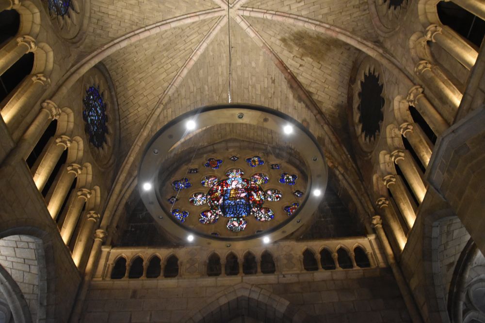 The sun brings the rosettes on to the wall of the gangway.