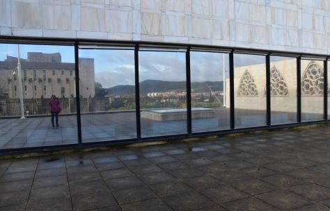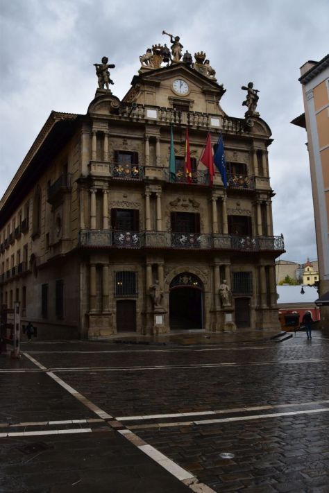 We drive back to Pamplona. Fog and rain accompany us.
