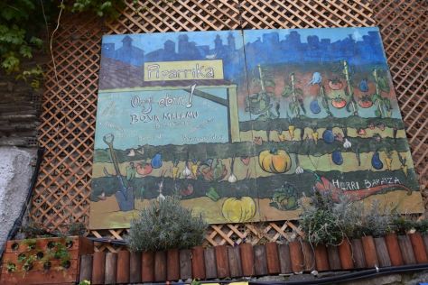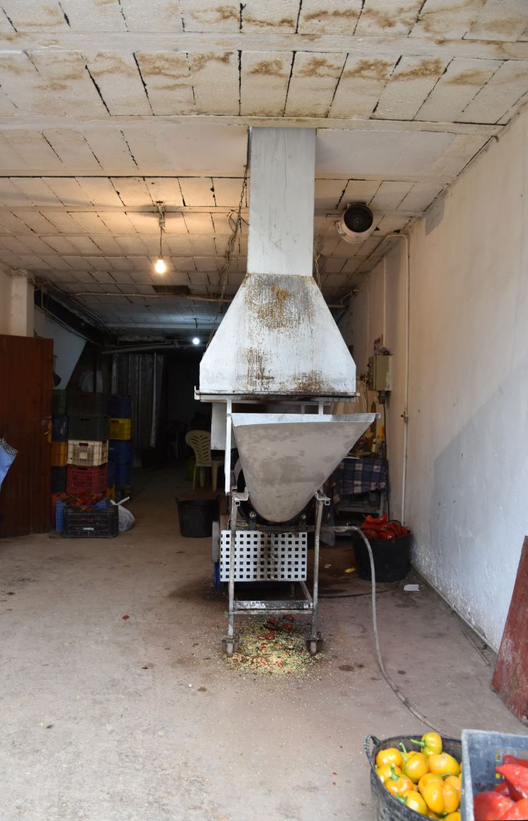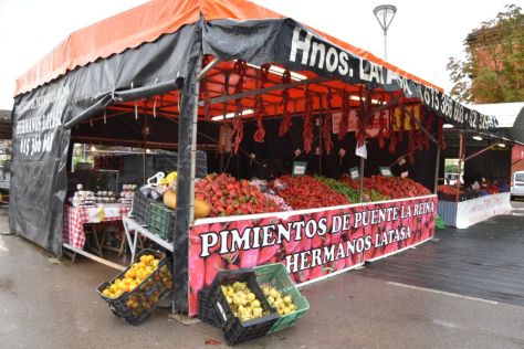 We have parked our car near the market that sells primarily pimientos or sweet pepper.