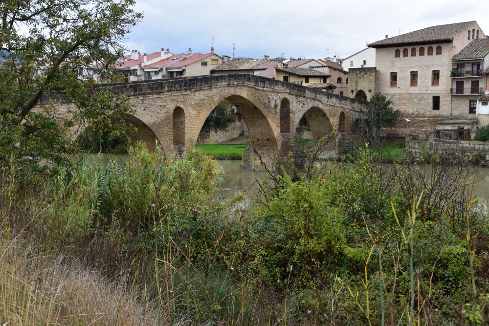 In the early 11th century, pilgrimage on the Way of St. James thrived. Two branches of the Way of St. James meet here to cross the river Agra. The wife of Sanchez III the Great (or her daughter in law) decided to build a bridge and for that it was called “Puente de la Reina”. This is the bridge providing access to the city…