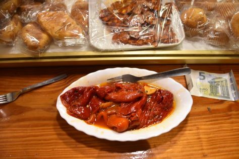 In the restaurant La Plaza, I eat marinated pimientos as a pintxo (snack) and they are very, very delicious.
