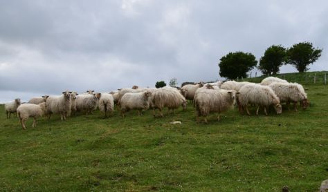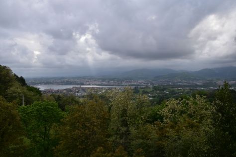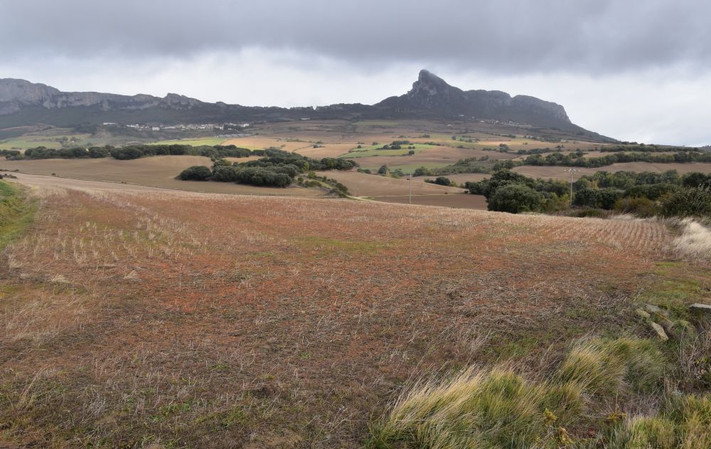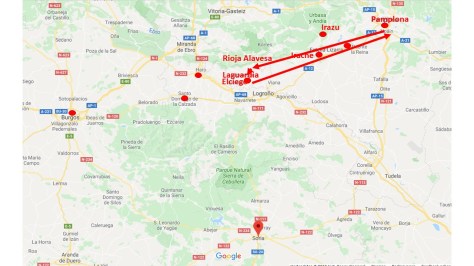 We are just below the Sierra de Cantabria. Dark clouds are looming, but the sun breaks through the clouds.