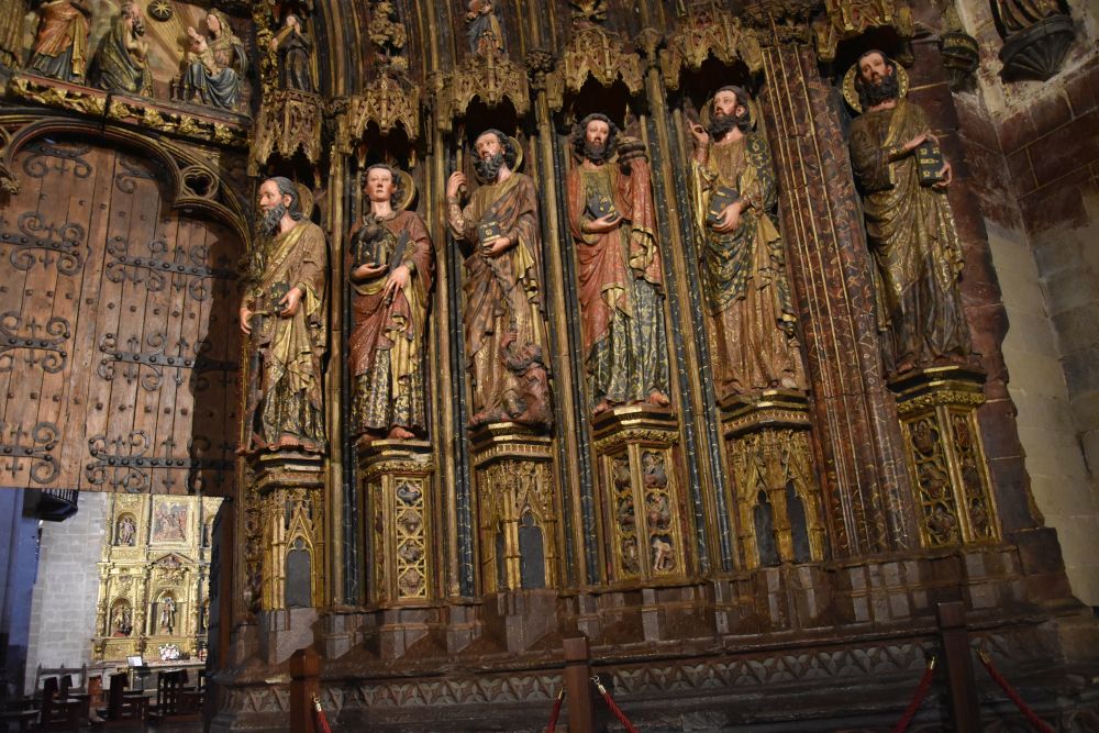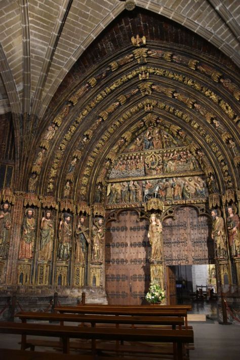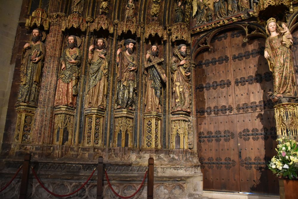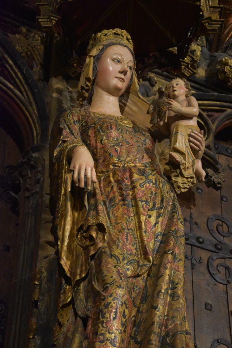 We have tickets for 11:15 to visit the porch of the Santa Maria church. It is only possible to see the porch as a guided tour. The porch is from the 14th century and has been repainted in the 17th century. To protect the colours, the porch has always been protected by a wooden door. Therefore the colours have been preserved illustrating to us, what porches might have looked like really. I have never seen that before.