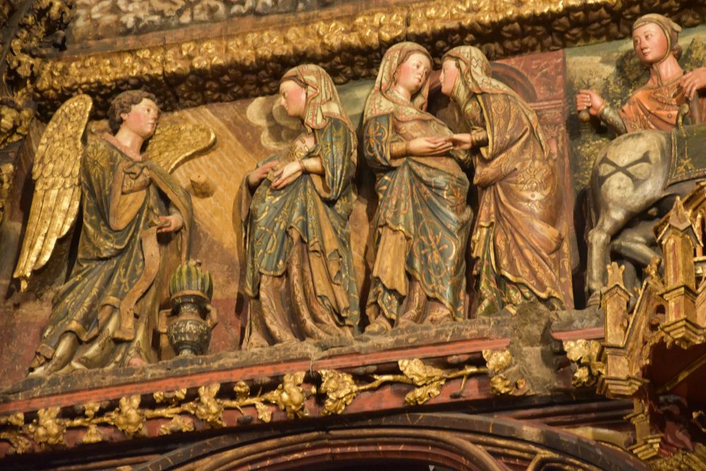 Above are the Annunciation (Gabriel announces to Maria that she will have a son) and the Visitation (Maria, pregnant from Jesus, visits Elizabeth, pregnant from Juan).