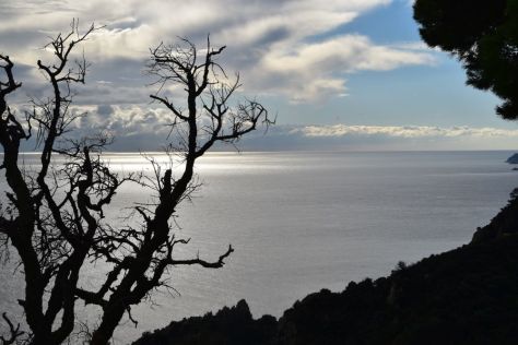 Portbou was the scene of the dramatic death of the German Jewish philosopher Walter Benjamin in autumn 1940. We stopped in Portbou to commerate him. Walter Benjamin succeeded in crossing the border from France to Franconian Spain. He and a group of Jews intended to travel on to Lissabon and then to the US. But Franconian Spain had just changed the law and would not let the group continue to Lissabon without a valid confirmation that they were allowed to leave France. Which, of course, they did not have. Benjamin committed suicide, and the rest of the group could then travel on to Lissabon. This monument called Passatges reminds us of that drama: Stairs lead into the sea.