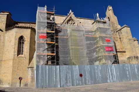 Now I look forward to seeing the famous apostle portal of the Gothic church Santa Maria La Mayor (built around 1300). Here it is, hidden because of renovation. Bad luck.