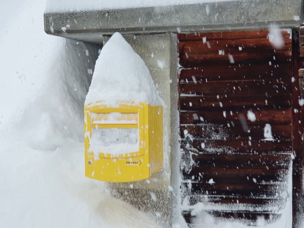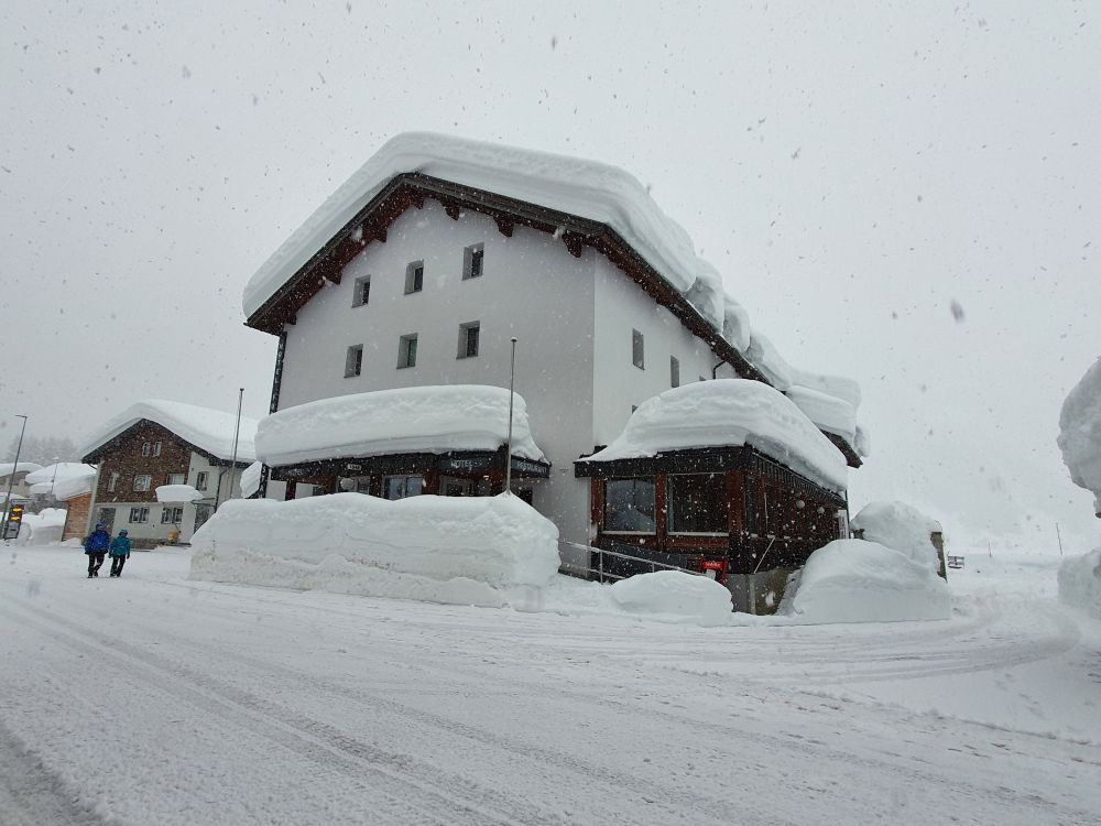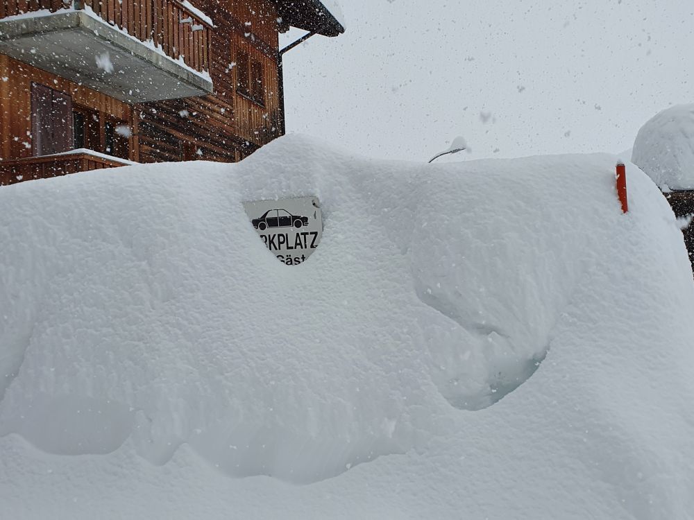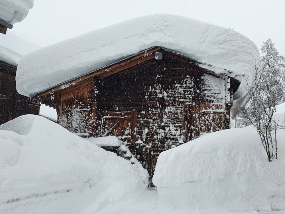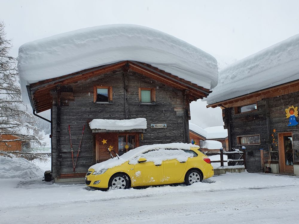The Murmeli (house with the name “little marmot”) has already worked hard to free the car and the road has been groomed in the meantime. I wonder, whether this small house can carry the weight of the snow.