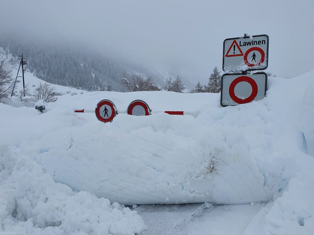 … ends after some 500m. Danger of avalanches (Lawinen). You are not allowed to continue on foot or by car.