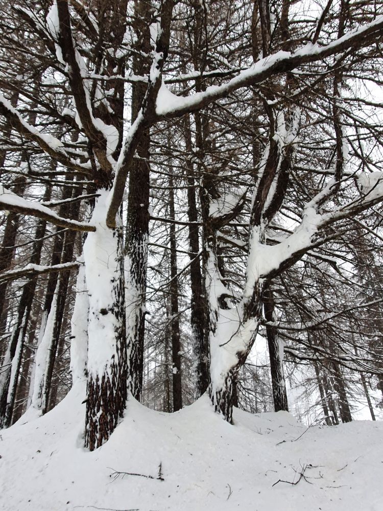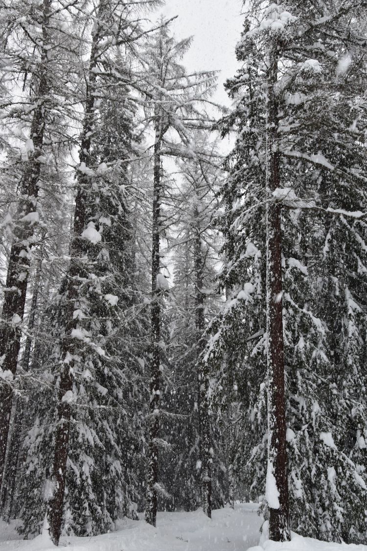 The fir trees are bending under the wet snow – it is close to zero degrees.