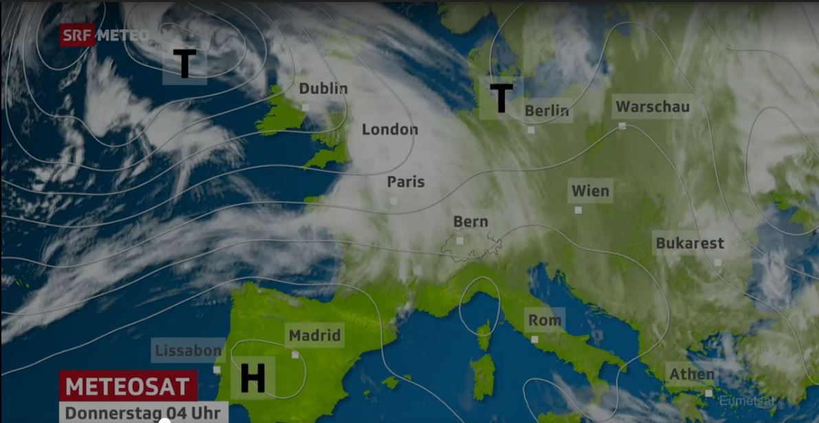 This is the SRF METEO weather map of Thursday. The snow starts falling on Wednesday. We run down to Münster, find that the tracks are filling up more and more with snow and return back to Oberwald.