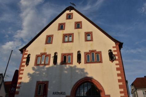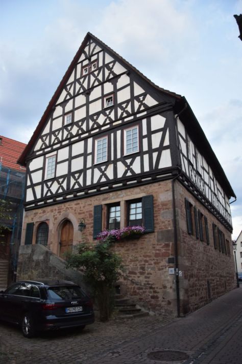 The “Kemenate derer von Hutten” (bower of the von Hutten family) was built in 1557. It was reconstructed in 1732 to serve as the Lutheran parochial house, as the plate on the house explains.