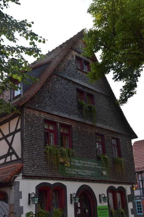 On the ground floor, the shop “Wilde Speisekammer” sells local specialties, including venison products, as the owner is a hunter. The owner tells me that the guards of the nearby castle once stayed in this house (“Burgmannen” can be translated as “castle men”).